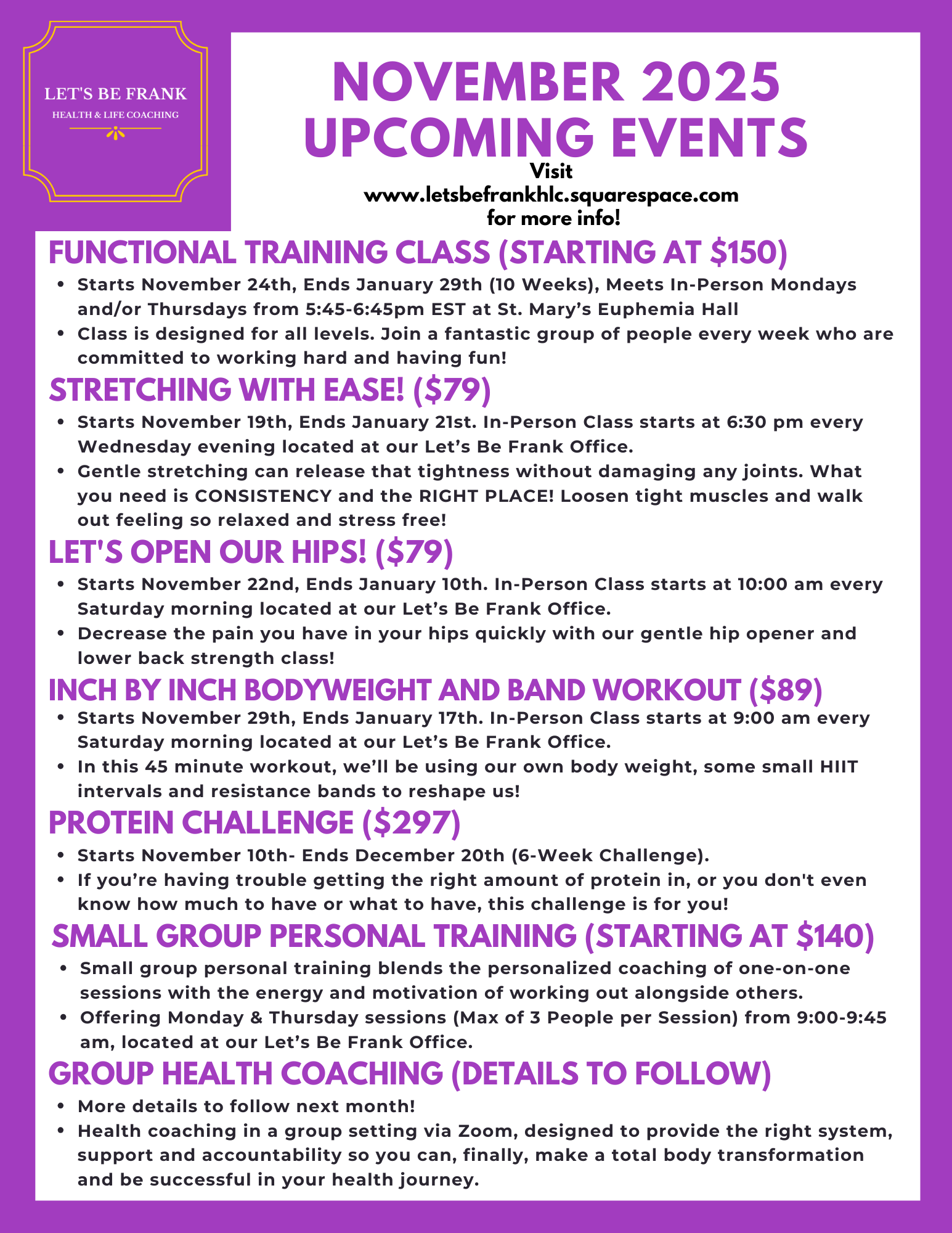 Welcome to Let’s Be Frank Health & Life Coaching!
